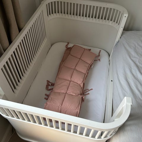 Sebra myy sänkyyn omaa patjaa mutta me olemme käyttäneet ihan tavallista patjaa ja petaria vuoteessa, kulmien kaarevuus ei tätä estä. Halutessaan saat kaupan päälle yhden lapsen n. 4 vuotta käyttämän Ikean jousipatjan.