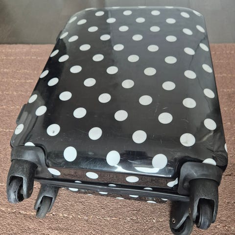 Aito lentolaukku. Lukitus toimii ylhäällä, mutta etutaskussa ei.