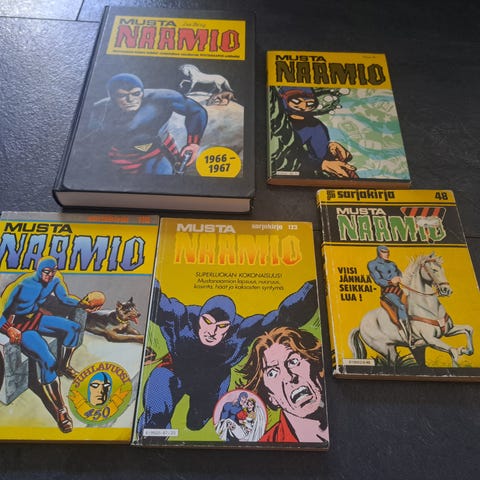 Musta Naamio sarjakuvalehdet, yhteensä 4 kappaletta. Mukana muun muassa Mustanaamio-tarinan 450-vuotisjuhlanumero.