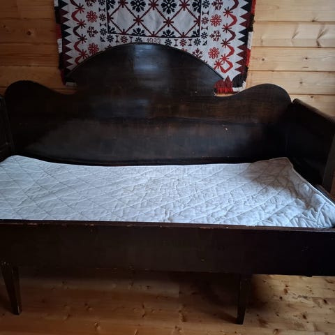 Uudelleen verhoiltu alkuperäinen pormestari sohva. Alkuperäiset puiset käsinojat löytyy myös mukaan.
