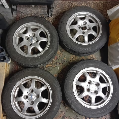 Cordiant kesärenkaat aluvanteilla. DOT-merkintä 0222 ja kulutuspintaa jäljellä noi 5mm.