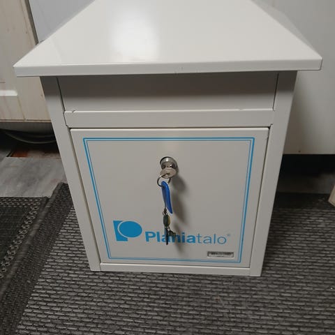 Toimituksessa on postilaatikko, 2 avainta ja asennustarvikkeet.