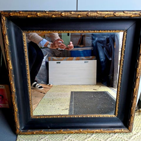 50cm halkaisijaltaan oleva vanha vintage peili. Muovireunat. Pahvia takaa. Nouto.