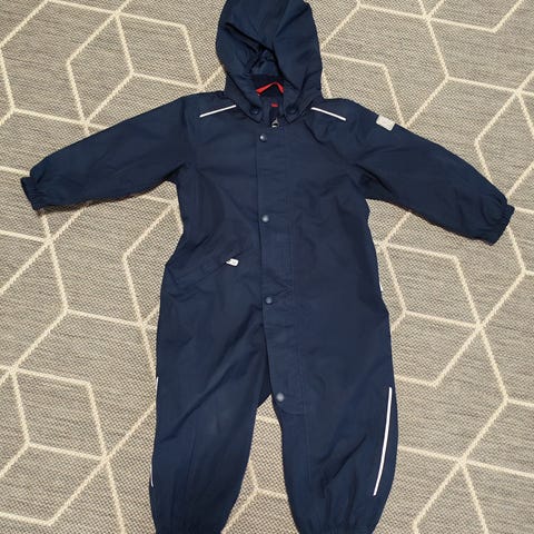 Neljän sadepisaran kuorihaalari, yhden lapsen käytössä ollut. Pepussa tummentumia, mutta kuva kyllä liioittelee. Koiratalous, haalaria ei ole pesty. Nouto kauklahdesta tai postitus