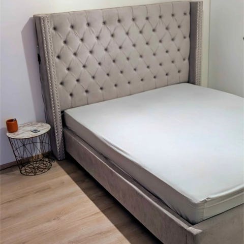 Myydän hyvänkuntoinen sänky 160x200. Sängynpääty on irrallinen. Sängynpäädyn alaosa on repeytynyt.