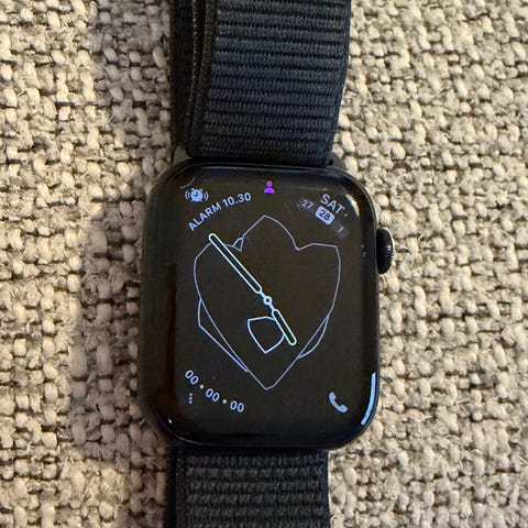 Apple Watch älykello mustalla rannekkeella. Mukana tulee magneettinen latauskaapeli ja alkuperäiset rannekepakkaukset. Kellossa on kosketusnäyttö ja vaihdettava ranneke. Sopii yleiskäyttöön, kuten ajan seurantaan ja perustoimintoihin yhteensopivan iPhonen kanssa.
