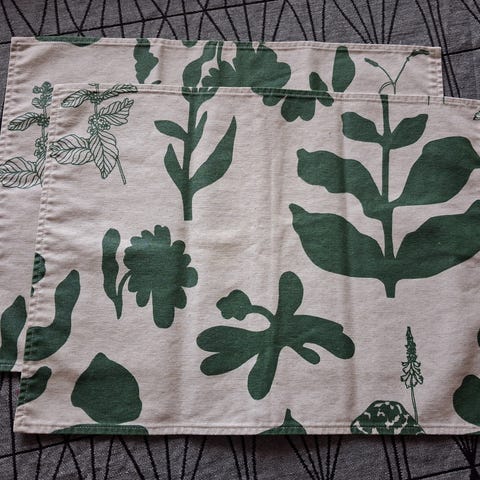 Joskys pidetty, kaunis punainen väritys. En löydä mitään erityistä huomautettavaa kunnossa. Kuvattuna molemmin puolin. Koko 41x31. Kuosi ilmeisesti sarafan. Maija Isola. Yhteishinta 70e. Jos yksittäin silloin 15e/ kpl.