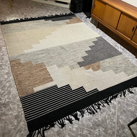 Siisti musta valko raidallinen keskilattiamatto. Puuvilla. Pestävissä ihan konepesuna.