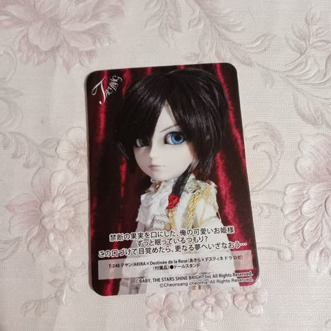 Taeyang Arion alkuperäisellä faceupilla, chipeillä, keholla ja tatuoinnilla. Mekanismi toimii hienosti. Peruukkina toisen nuken stock. Nuken käsissä kellastumaa ja kainaloissa stock-vaatteiden jättämää lievää värjäymää.