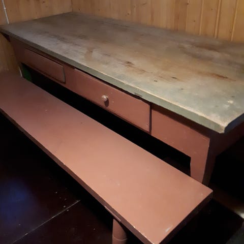 Vanha, painava ja tukeva pirtin penkki. Istuinlankun paksuus 5 cm.