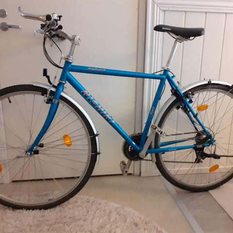 Myydään kuvien mukainen Nishiki-hybridipyörä. Toimiva ja tukeva peruspyörä työ- ja arkiajoon. Pyörä on niin sanottu "miesten malli" (korkeammalla vaakaputkella), mutta itse pidän sitä unisex-mallina.