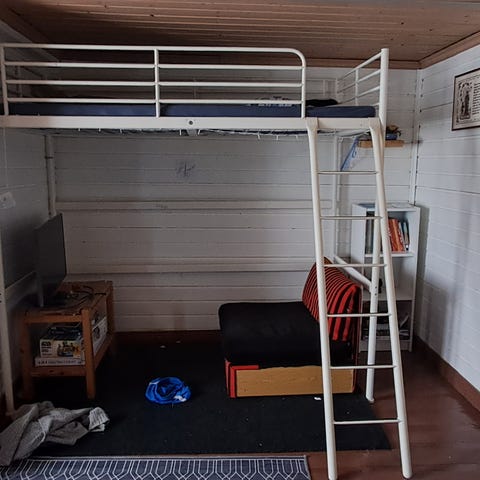 Parvisänky, jossa integroitu työpöytä, hyllytilaa sekä kiva nurkkaus vaikka säkkituolille. väri valkoinen ja kunto hyvä. Ei isompia kolhuja tai muuta.. Sängyn alla on tilava työskentelyalue, jossa pitkä pöytätaso ja säilytyshyllyt esimerkiksi kirjoille ja tavaroille. Meillä ei toiselle tyttärelle oikein ole muotoutunut sopivaksi mutta esikoisen tykkäsi pöydän ääressä askarrella ja istua säkkituolissa lukemassa.. Myydään palasina ja printataan ohjeet mukaan. Makuuhuoneen kaaoksen takia kuva ostopaikan verkkosivuilta 🙄