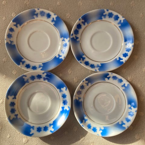 Myynnissä myös sinisellä kuviolla ja pelkkiä asetteja kumpaakin väriä