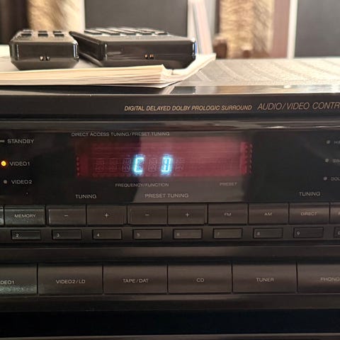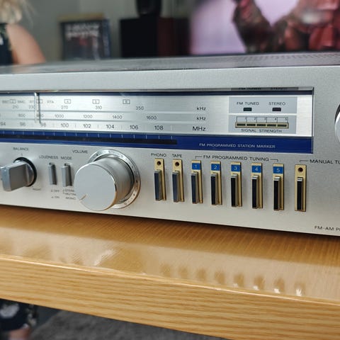 Vaatii korjausta. CD-kelkka toimii, mutta CD ei lähde pyörimään. Viritin-vahvistin toimii.