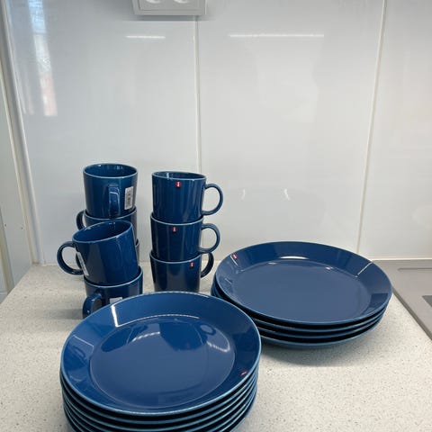 Myydään arkikäytössä ollut siisti Iittalan Teema helmenharmaa astiasto.