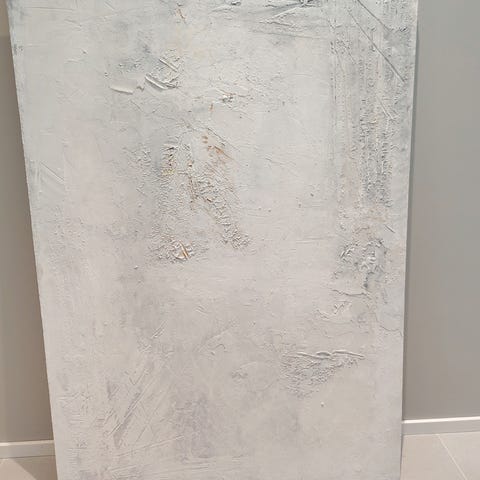 Uniikki strutsi puupohjaisella levyllä. Koko 70*120cm. Näkyvä struktuuri, harmaat sävyt. Ei heijasta tai kiillä. Varastoinnin aikana hiukan vääntynyt, näkyy sivulta katsottaessa. Edestäpäin Ok. Kuljetus lähialueelle mahdollinen.