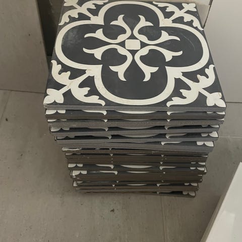 Valkoiset kiiltävät laatat, jääneet yli remontista.