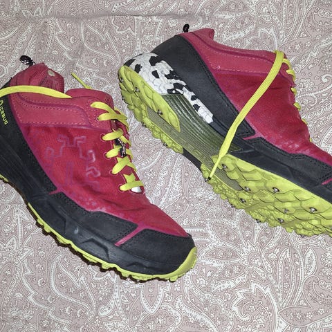 Icebug nastakengät koko 38. Mustat nilkkapituiset kengät, joissa karkeakuvioinen ja nastoitettu ulkopohja liukkaalle alustalle.