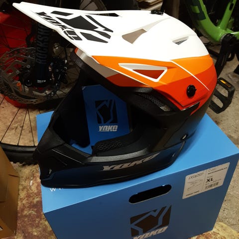 Yoko motocrosskypärä koossa XL (61–62 cm). Väri musta.