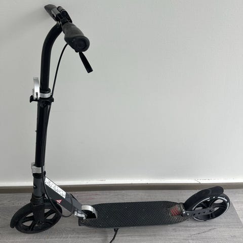 Lasten potkulauta, jossa on pinkki-valkoinen runko ja mustat käsigripit. Potkulaudassa on suuremmat ilmakumirenkaat edessä ja takana sekä jalkajarru takarenkaalle. Se soveltuu lapsille tasaisille alustoille, kuten pihoille ja kevyen liikenteen väylille. Ohjaustangossa on pehmuste ja potkulaudassa on astinlauta, jossa on liukuesteet paremman pidon takaamiseksi.