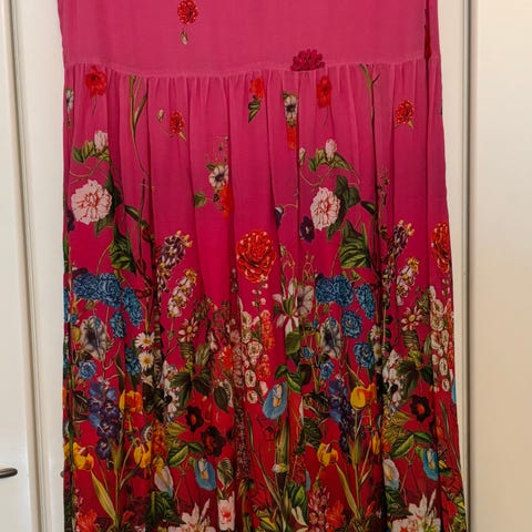 Ihanan ilmava ja viileä kesämekko. Pituus nilkkaan. Edessä lisäänilmavuutta tuova laskos.
