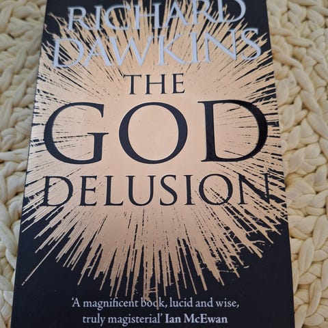 Richard Dawkins The God Delusion -kirja, englanninkielinen pokkaripainos. Teos käsittelee uskontoa, jumalauskon perusteita ja ateismia. Kirjassa on esipuhe pokkaripainokseen sekä useita lukuja, joissa tarkastellaan muun muassa jumalahypoteesia, uskonnon vaikutuksia yhteiskuntaan, moraalin alkuperää ja uskonnon roolia yksilön elämässä. Takakannessa on lyhyitä arvioita teoksesta sekä kustantajan tiedot ja ISBN-numero.