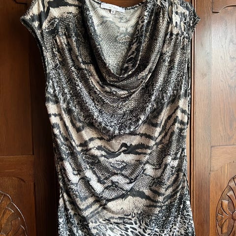 Stockalta ostettu käyttämättä jäänyt Global Essentials käärmekuvionen paita jonka väri on sini-vihreä-petrooli. Rypistymätön polyester. Vähän läpikuultava. Koko 44.