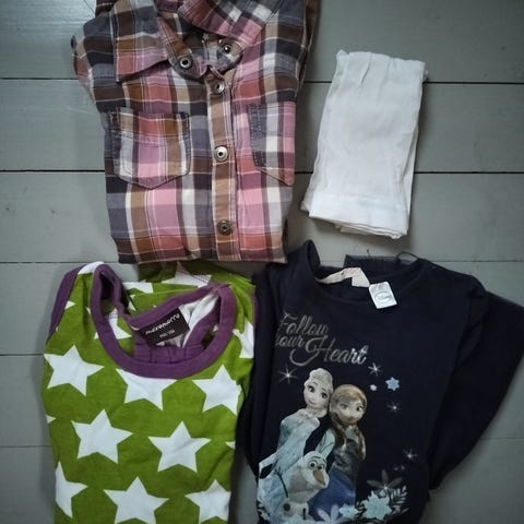 9-osainen vaatepaketti noin 4-6- vuotiaalle. Kokomerkintä 110-116 ellei toisin mainita.