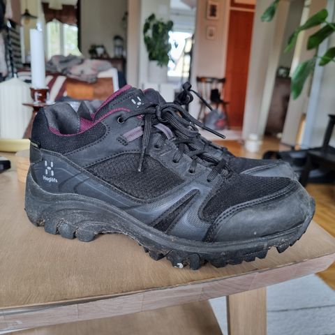 Haglöfs vaelluskengät, naisten malli ja koko 38 2/3. Vedenpitävä Proof Eco -kalvo. Ostettu viime keväänä uutena. Olleet käytössä nuorella yhden vaellusreissun ja nyt käyneet pieniksi. Pesty käsin ja kuivattu reissun jälkeen. Sopivat vaellukseen, retkeilyyn ja muuhun ulkoiluun.