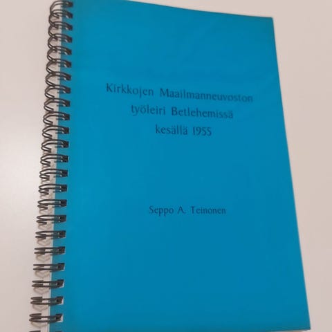 Nidottu, 40 sivua. Takakannen sisäpuolella parin sanan kuulakärkikynällä tehty merkintä.