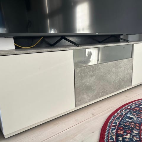 Myydään valkoinen kohtuukuntoinen tv-taso. Reunat ottaneet vähän osumaa muutossa, mutta muuten siisti ja toimiva taso. Korkeus: 50cm Syvyys: 43cm Leveys: 141cm.