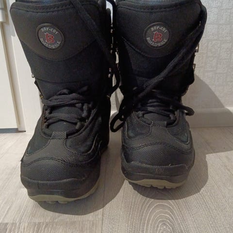 Lumilautakengät (Stuf). Kengissä on irrotettava sisäkenkä, sisäkengän kiristys pikakiinnityksellä ja ulkokengässä nauhakiinnitys. Koko 280, joka vastaa n. kokoa 42,5.