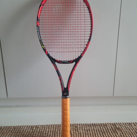 Yonex Ezone 98 Tour tennismaila. Kehän koko 98, paino 315g, jänneväli 16x19, kahvan koko 4. Jänteinä Babolat RPM Blast 23kg. Kehässä jonkun verran kulumaa, mutta muuten maila hyvässä kunnossa.