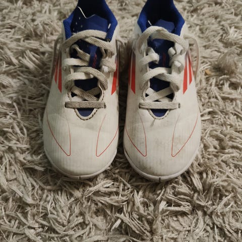 Neljä kuukautta käytössä olleet lasten futsal-kengät.