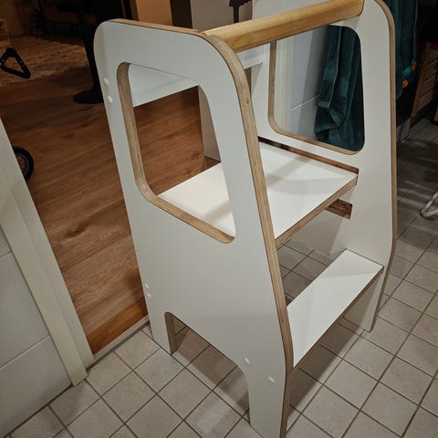 Pikku apurin jakkara. Seisomatasoa saa 3 korkeuteen. Jakkara on tukeva, mutta maalipinta on kulutun kovan käytön seurauksena. Koiratalous. Pelkkä nouto Kokkolasta.