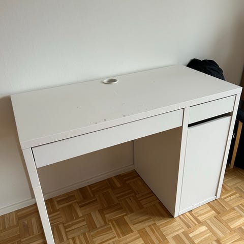 Ikeasta ostettu työpöytä. Lasitasossa jonkun verran naarmuja, näkee läheltä katsottuna. Annetaan muuton vuoksi, nouto viimeistään ma 2.3
