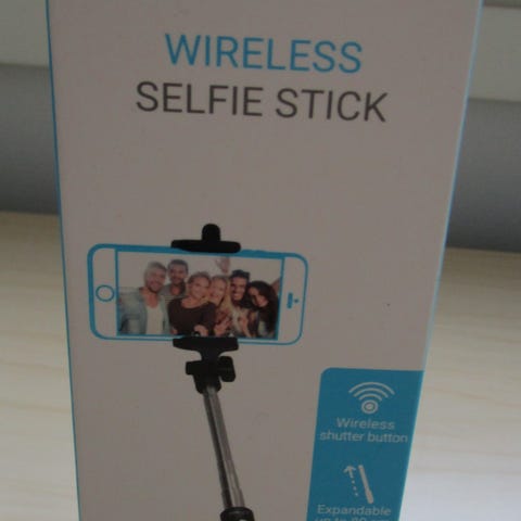 Selfietikku avattuna. Varsi ei ole pisimmillään tässä kuvassa.