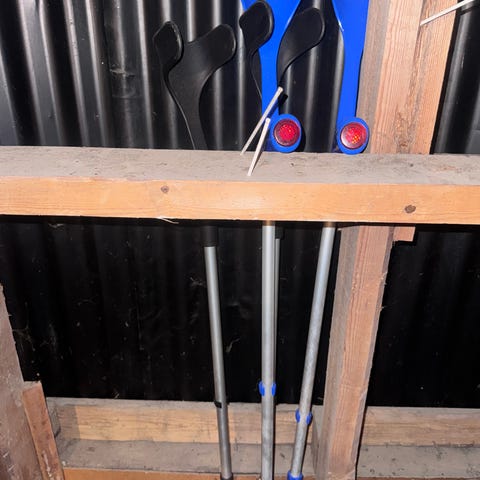 Annetaan viikon käytössä olleet lasten kyynärsauvat jääpiikeillä. Vain nouto 20400 Turku.