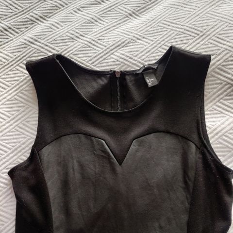 Käyttämätön tekonahkamekko, koko 34. Hihat ovat noin 3/4-pituiset ja kevyet ”puff sleevet”rypytyksillä. Selkäpuolella on vetoketju. Käyttämätön, laput otettu jo irti.