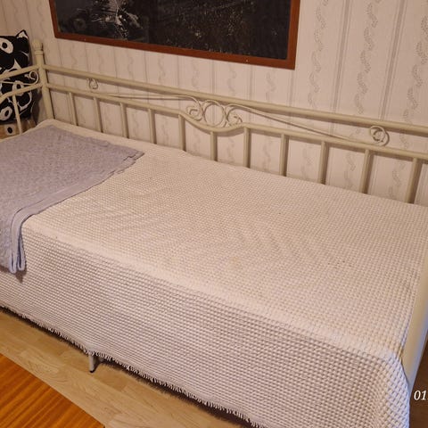Siistikuntoinen, alle vuoden käytössä ollut levitettävä sänky/sohva/vierasvuode. Tästä linkistä löytyy kaikki tarvittavat mitat ja tiedot: https://www.vidaxl.fi/e/vidaxl-vuodesohvan-runko-valkoinen-metalli-90x200-cm/8720286195550.html