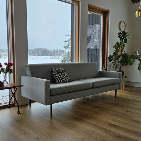 Sohva on puhdas ja tahraton. Ei nukkaa.