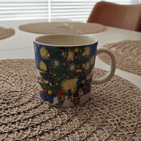 Muumimuki joulu 2004. Erittäin hyväkuntoinen muki. Ei ole säröjä tai pilkkuja lasitteessa! Nopea postitus ja pakkaan erittäin huolellisesti.