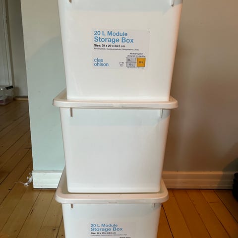 Hyväkuntoiset, siistit laatikot, vahvaa kovaa muovia. Yhteishinta 8 €.