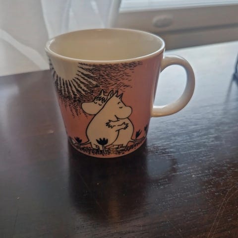 Arabia Muumi muki ja lusikka vaaleanpunainen