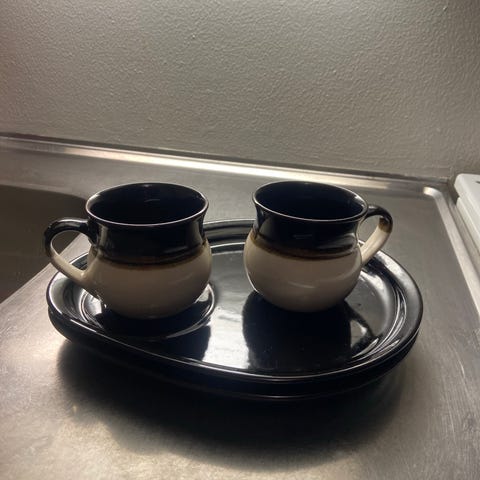 4kpl lautasia ja 6kpl kuppeja Kermansavi astiat . Kaikki ehjiä . Vain nouto