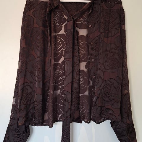Ihana, täydellisen ruskea silkkimäinen pusero kotimaiselta Halo from North -brändiltä. Materiaali on 52% ecovero viskoosia ja 48% viskoosia. Pinta on ylellisesti hieman kiiltävä ja pinta on silkkimäinen. Hihansuissa pienet kauniit napit ja kaulus mielenkiintoisella tavalla laskostettu. Malli on väljä, kauluksessa vetoketjukiinnitys .