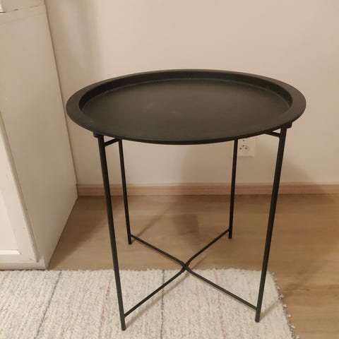 Jyskin pieni pöytä. Pieni jälki levyssä, josta kuva.