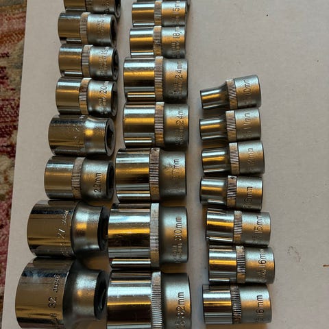 1/2” jatkovarsi hylsyjä ja muuta.