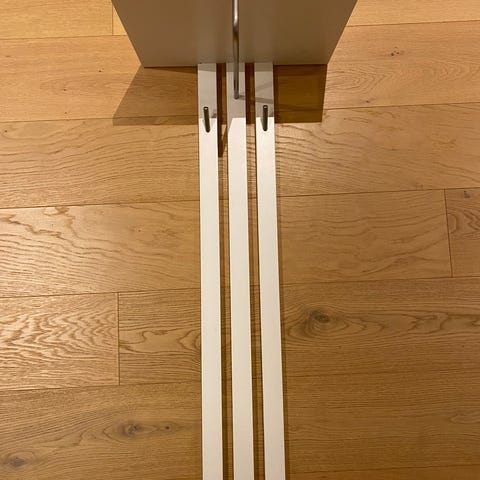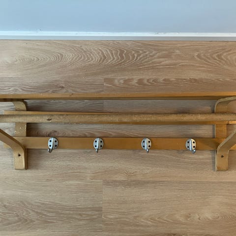 Hyväkuntoinen ehkä puusepän tekemä eteiskaluste/naulakko. Kuvassa otettu irti seinästä. Jämäkkä ja tukeva, todennäköisesti jotain kalliimpaa puuta. Kaunis ja kestävä pinta, ei niin tumma kuin kuvassa. Saattaa olla vanhempikin mutta näyttää melkein uudelta. Tästä hyvä, tyylikäs ja omaperäinen naulakko! Hyllyt käteviä säilytykseen ja alhaalle kengät, menee pienempäänkin eteiseen. Mitat saatavilla myöhemmin!