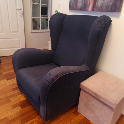 Annetaan Asko ruskea rahi. Rahin sisällä kätevästi iso säilytystila. Ehjä. Ollut meillä olohuoneessa koiran lepopaikkana joten pinta jo hieman nuhjuinen. On kuitenkin ehjä.